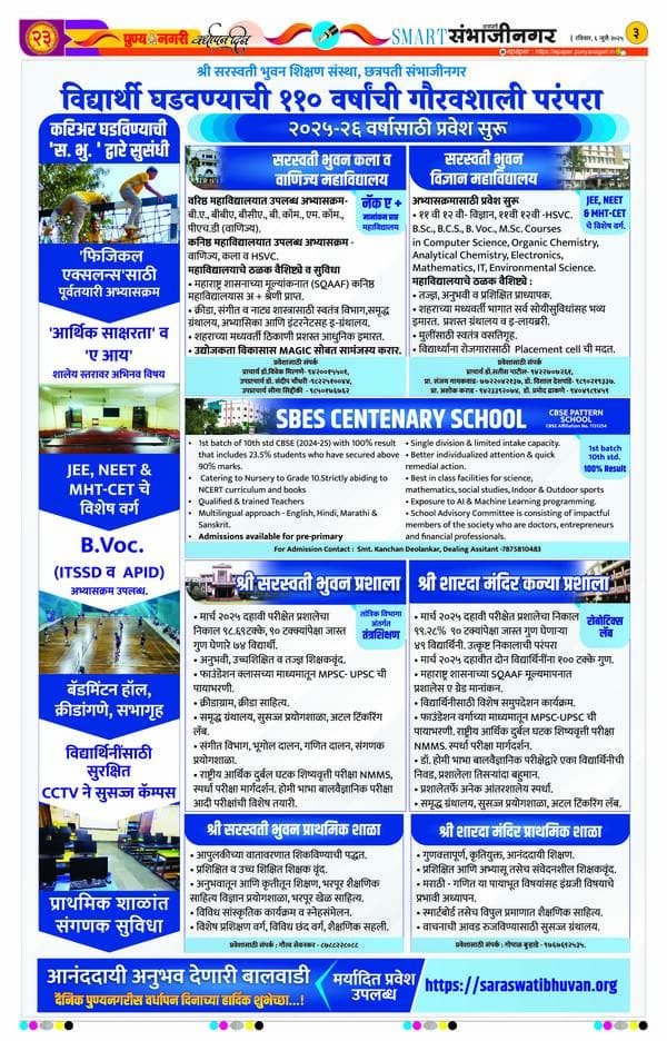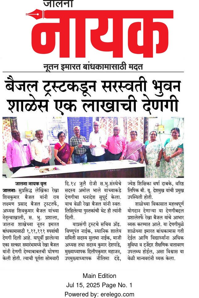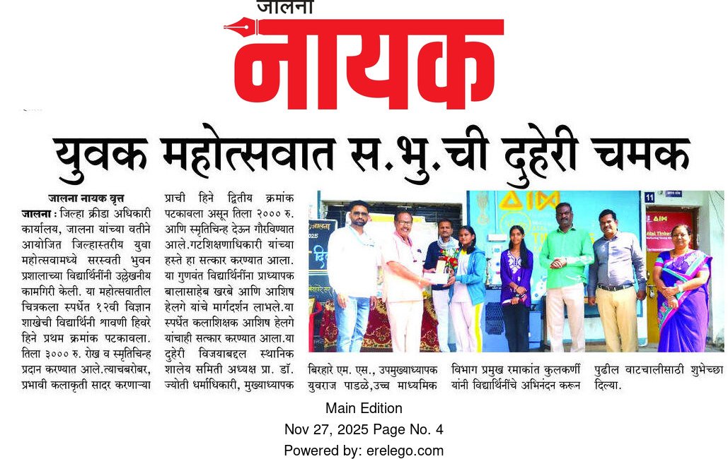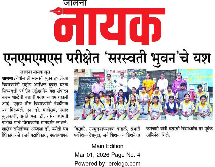 S. B. Prashala, Jalna — also known as Saraswati Bhuvan High School — is a well-known educational institution located on Kacheri Road, Old Jalna, near Town Hall, Gandhi Chaman, Jalna (Maharashtra). The school is part of the prestigious Shri Saraswati Bhuvan Education Society, an educational organization established in 1915 with the vision of spreading quality education and promoting learning in the Marathi language during the pre-independence period.